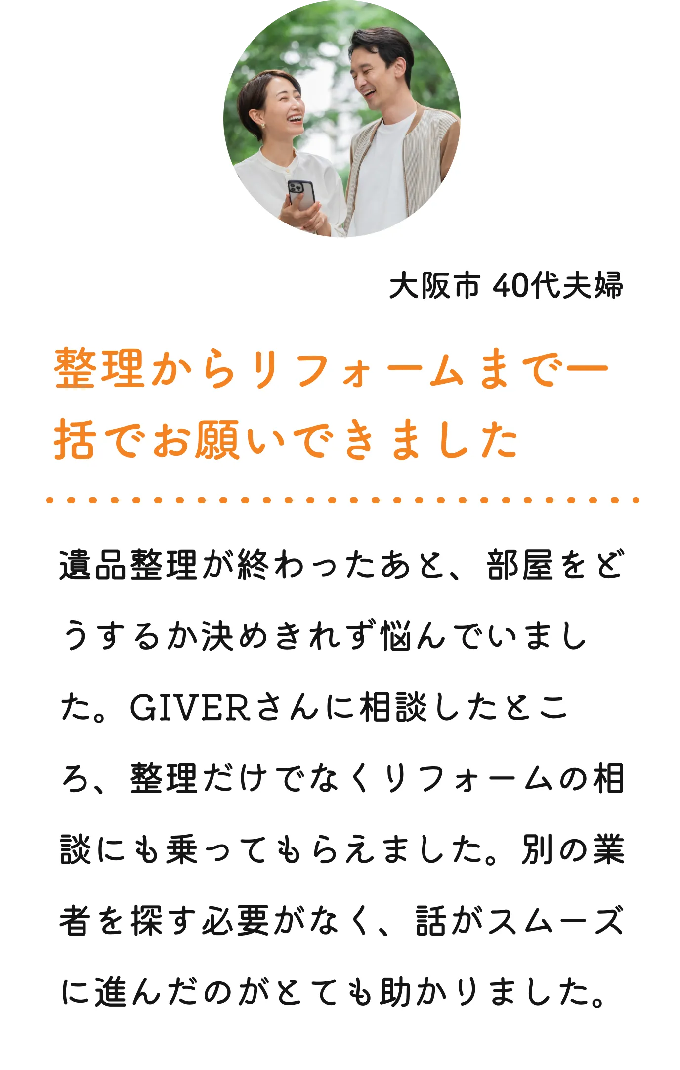 株式会社GIVERは、遺品整理だけでなく、整理後の清掃やリフォームまでまとめて対応しています。別々の業者に依頼する手間がなく、スケジュールや費用の管理も分かりやすいのが特徴です。「整理して終わり」ではなく、その後の暮らしや活用まで見据えたご提案を行っています。