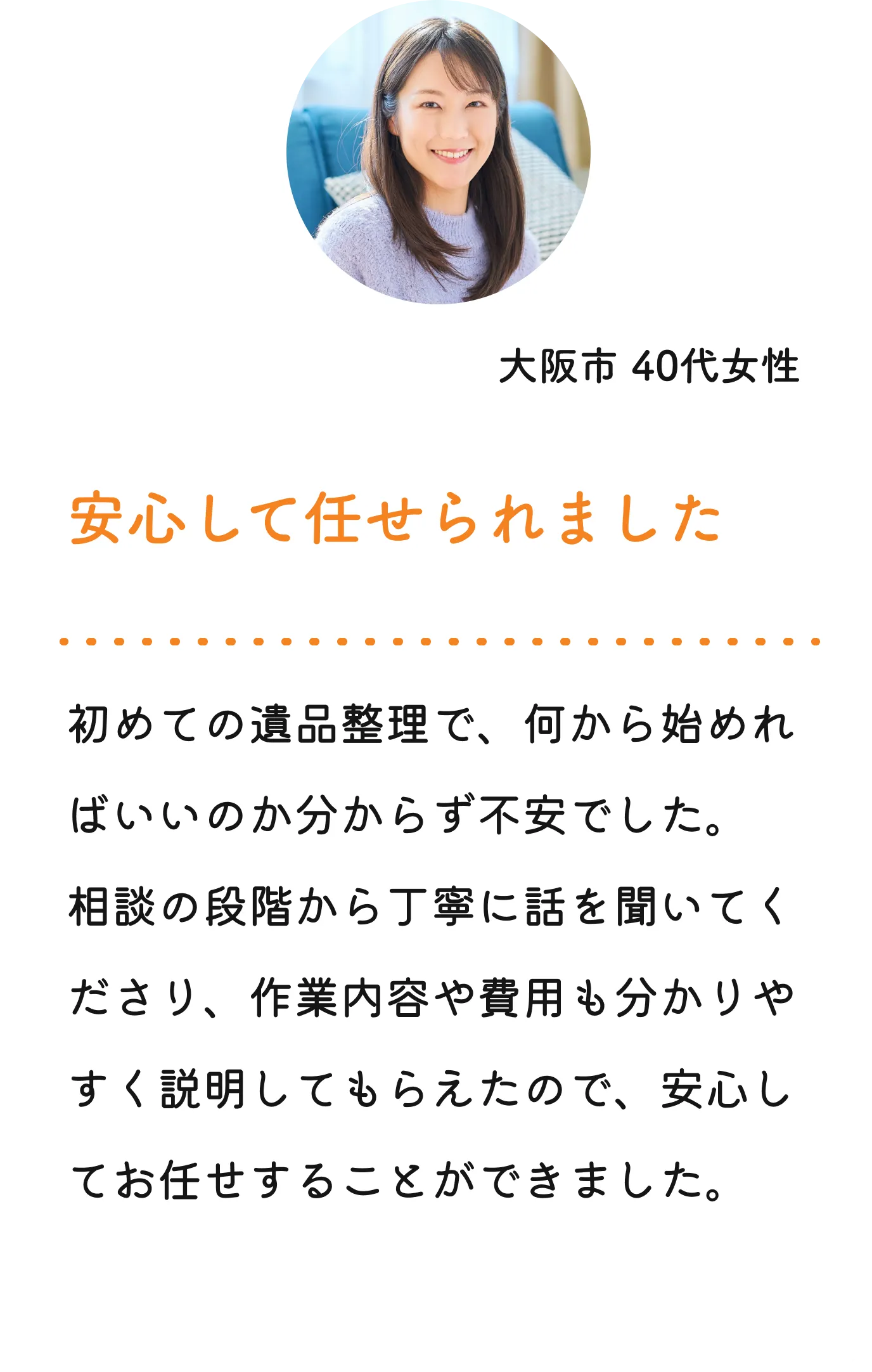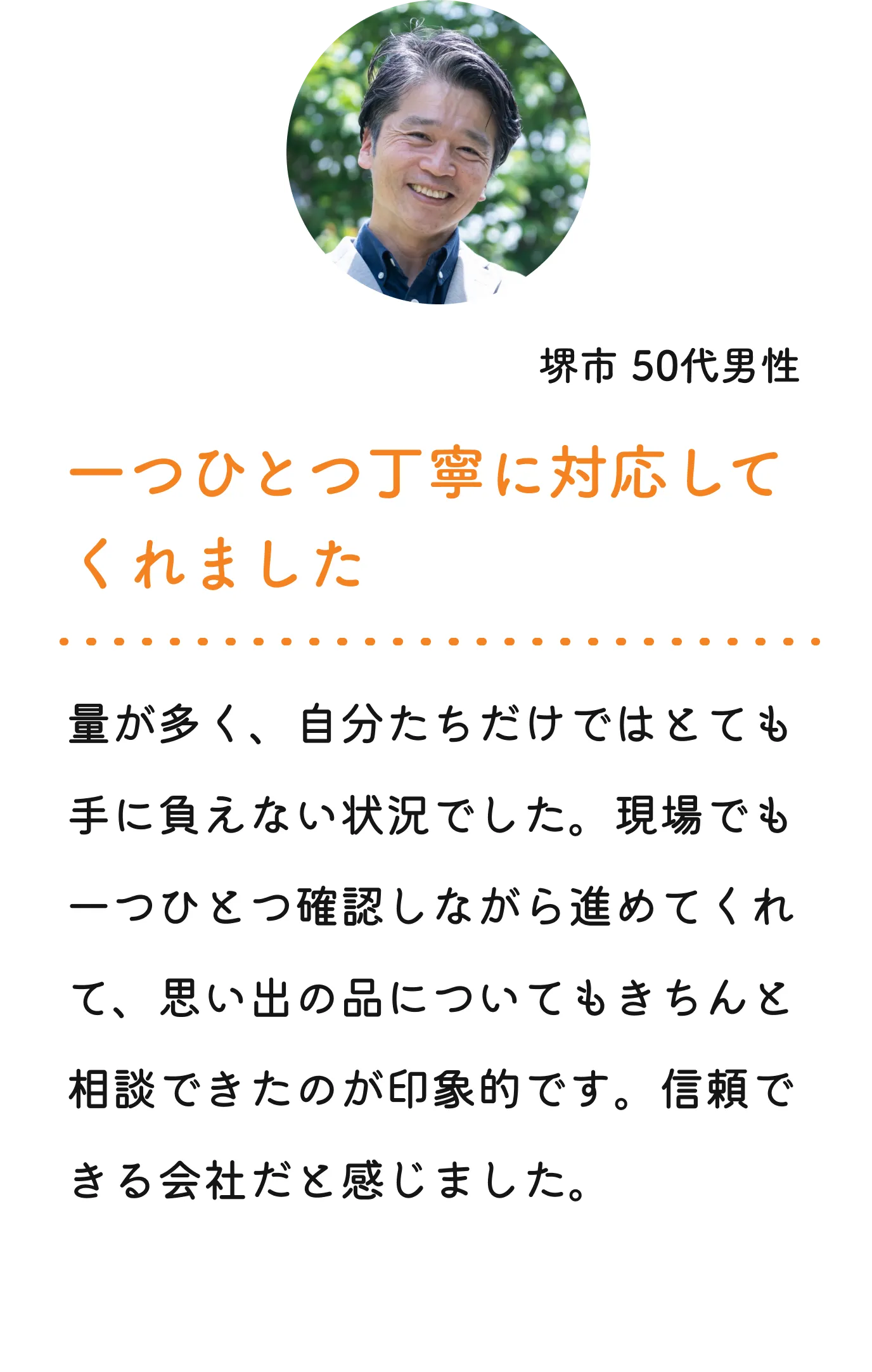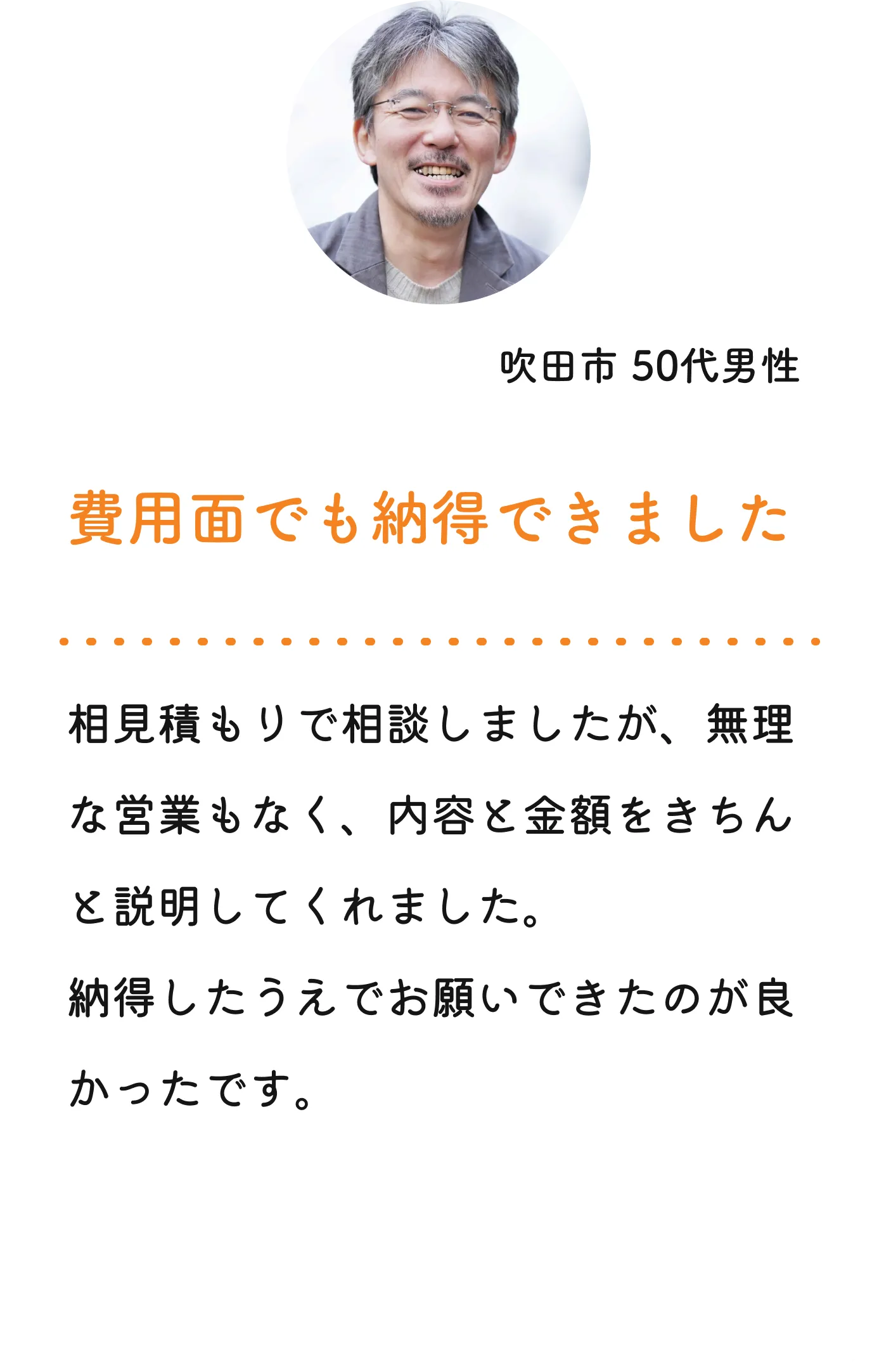 私たちは「一番安いから」ではなく、「納得して任せられるから」選んでいただくことを大切にしています。